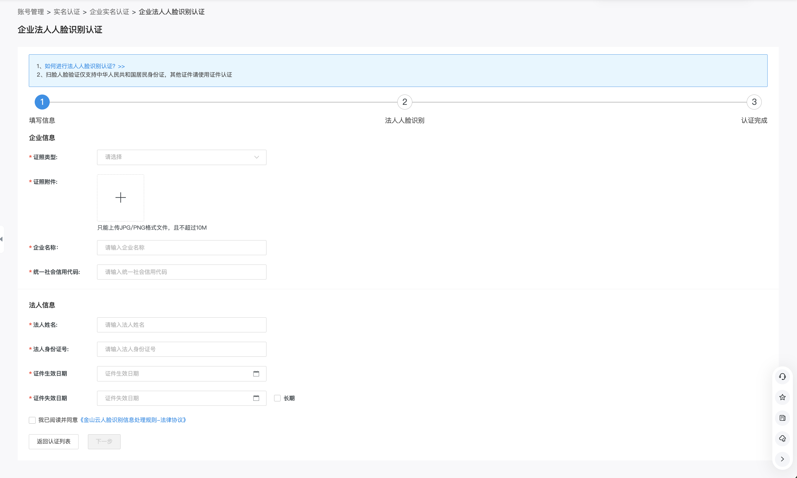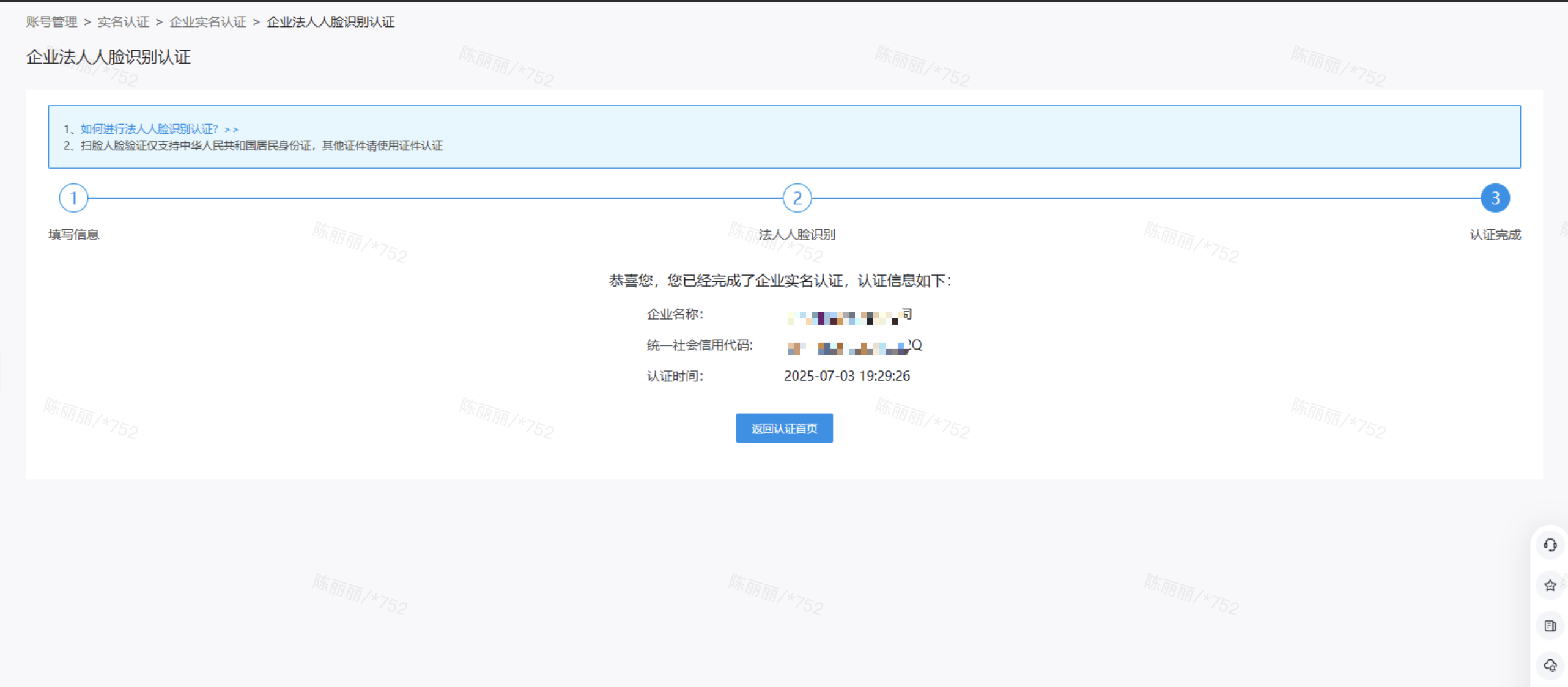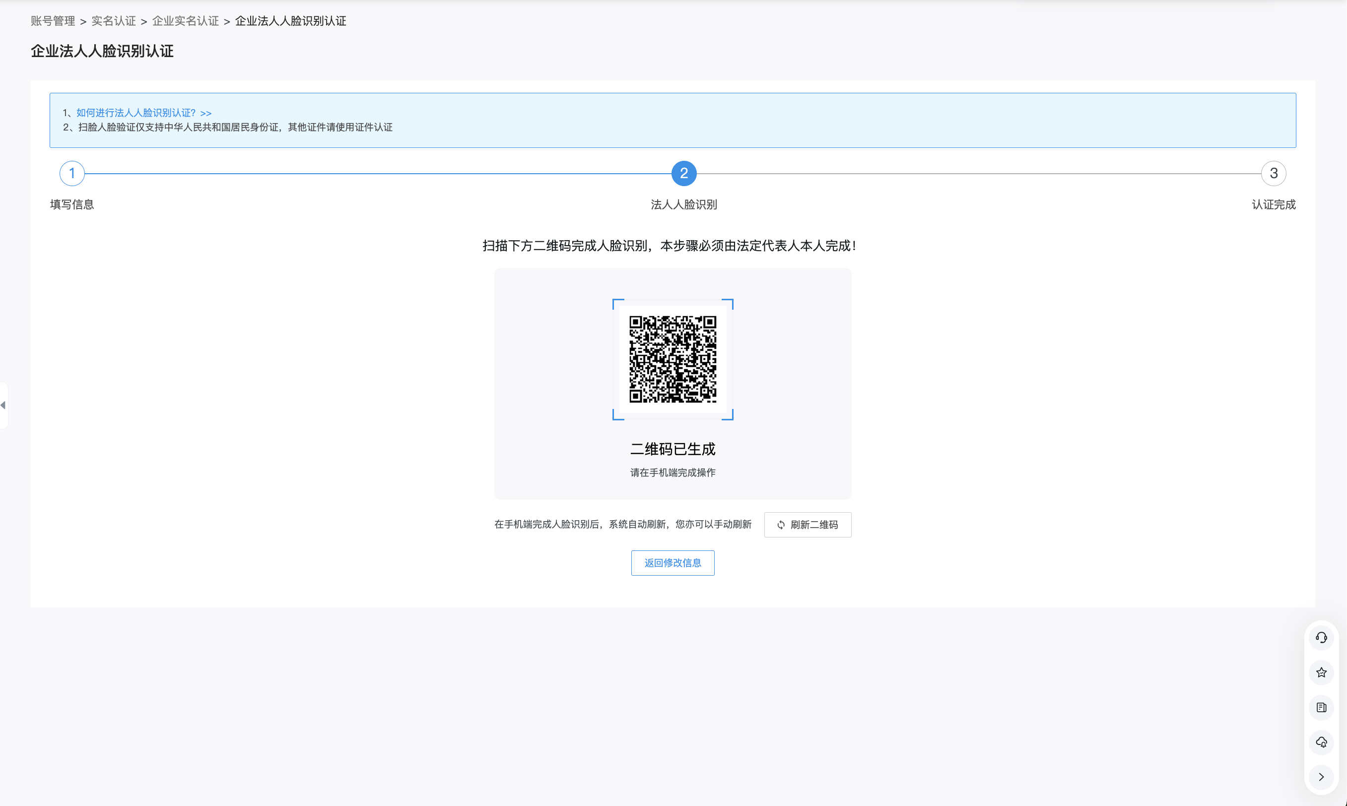 · 需要企业法人本人操作完成人脸识别验证