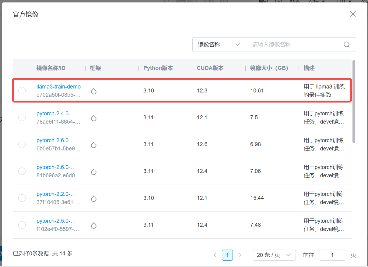 在官方镜像中找到 llama3-train-demo 这个示例专用镜像