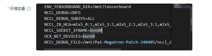 环境变量用于控制训练任务执行期间相关库的执行行为(如输出NCCL通讯库的日志信息)
