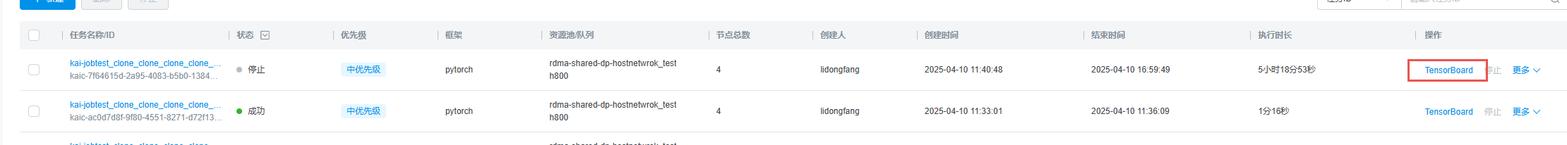 当任务正常启动后可以点击任务Tensorboard查看训练任务中监控数据
