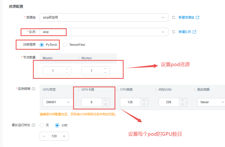 NCCL_DEBUG_FILE=/mnt/Pai-Megatron-Patch-240405/nccl_debug_file.%h.%p为了简化流程,本示例未配置Tensorboard。如需配置,请注意检查任务执行脚本,确保项目任务输出Tensorboard路径与目录挂载路径保持一致。可通过在任务配置中添加环境变量指定Tensorboard写入的路径。