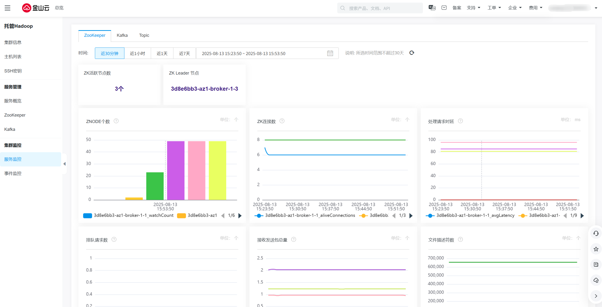 在KMR控制台提供了对集群状态和节点状态多维度指标的实时监控和历史监控,如存储、CPU、内存使用率等。您可以根据这些指标实时了解集群服务的运行状况,针对可能存在的风险及时处理,保障集群的稳定运行