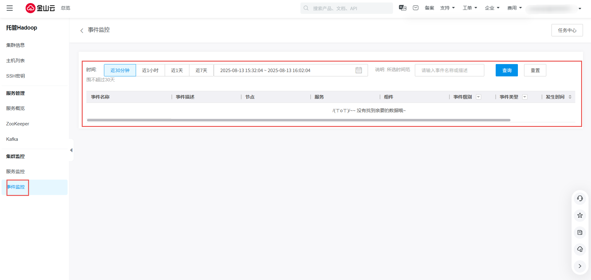 在事件监控里,您可以具体的看到每次变更操作的具体事件名称和状态等等,帮助您更好的了解每个组件的具体变更。同时您也可以选择您所想要查看监控的时间范围,以便更直观的监控每个组件的状态。