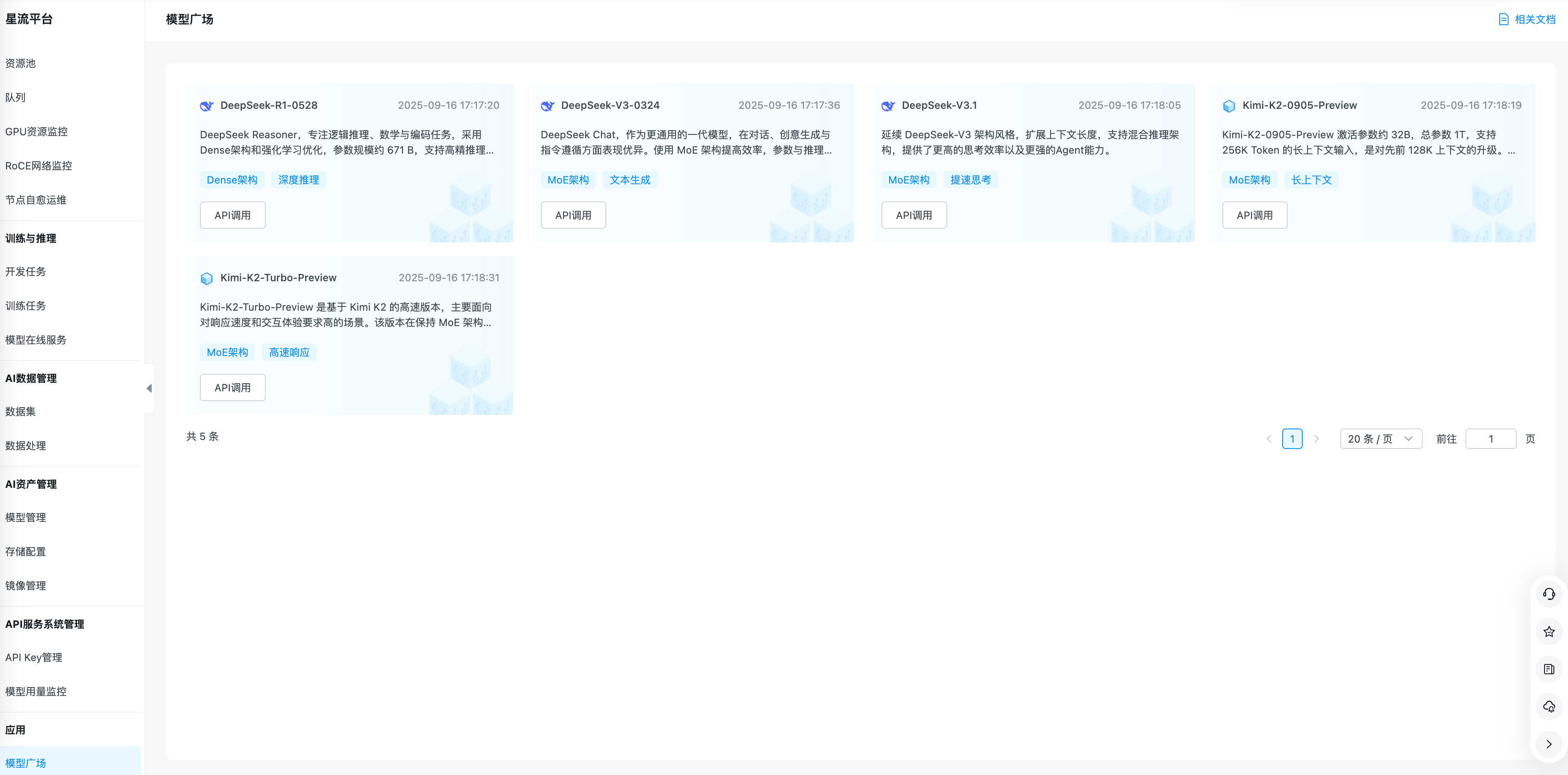 模型广场中可浏览所有模型API服务已支持的大模型,后续将会持续增加支持的大模型,敬请关注产品动态。