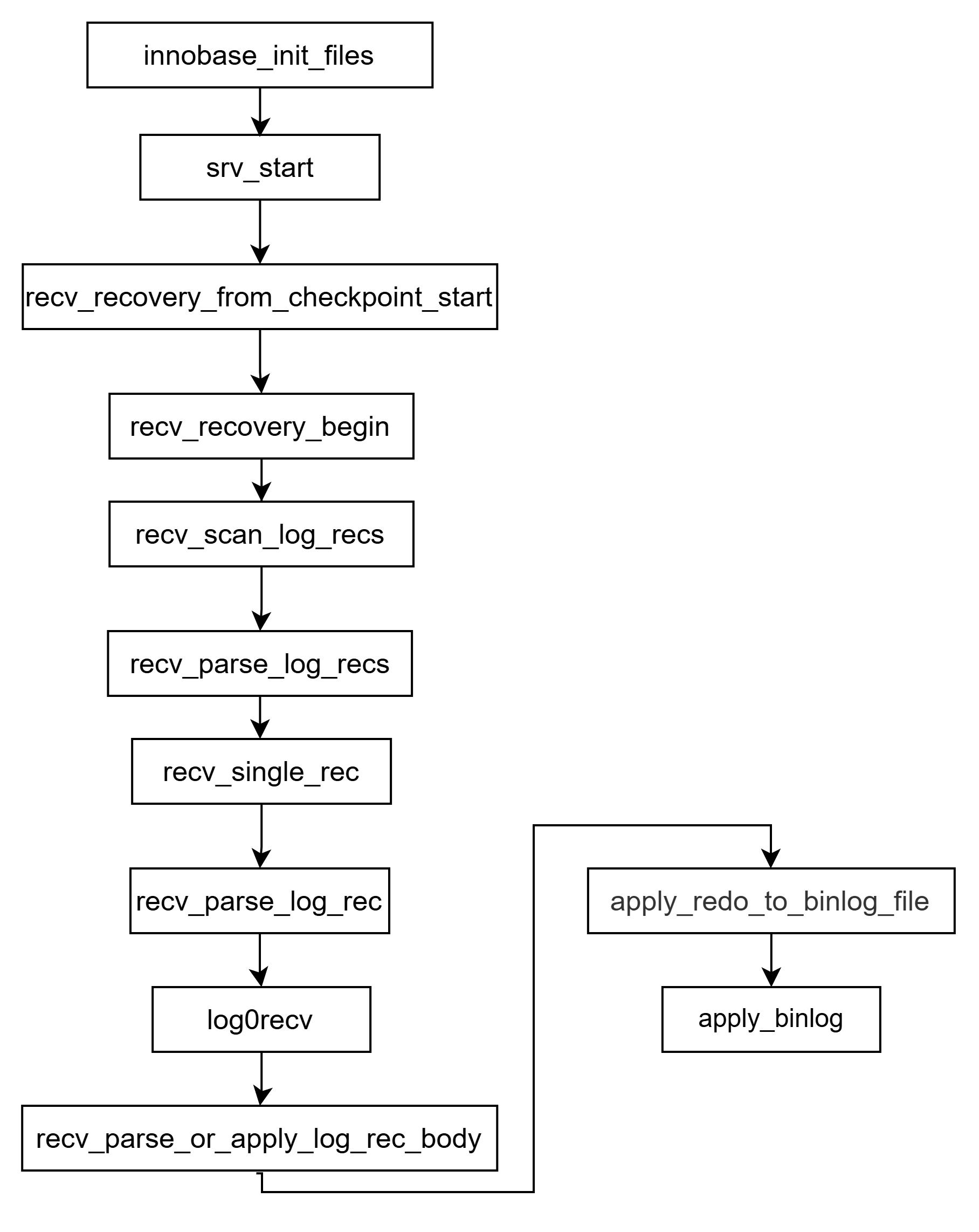 Crash Recovery过程中,无论是否开启binlog in redo功能,都应该尝试恢复binlog日志,因为进程启动时,并不知道先前crash时候,是否开启了binlog in redo。故只要遇到MLOG_BINLOG_IN_REDO_INFO类型的redo log,就要进行恢复操作。