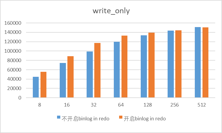 只写场景,中低并发性能提高3~28%(8-256),高并发性能基本持平(512并发以上)