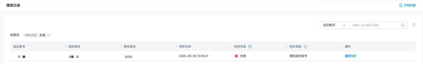 若出现同步失败的情况,您可在授信记录里直接重新发起同步。