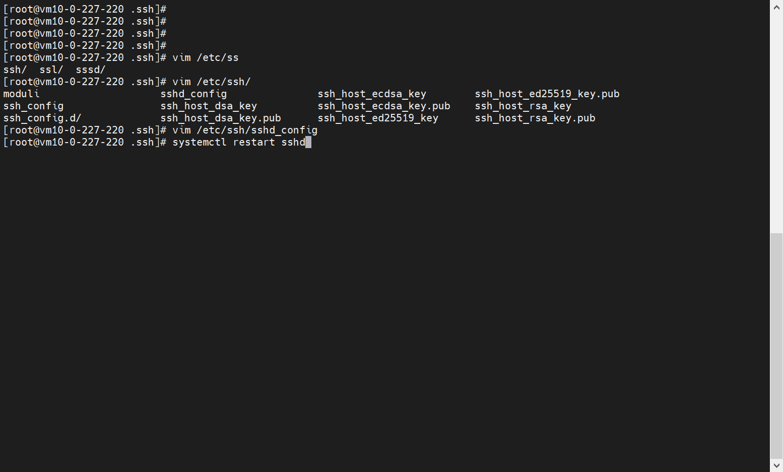修改保存退出后,需要重启sshd服务才能生效。 重启服务命令:systemctl restart sshd