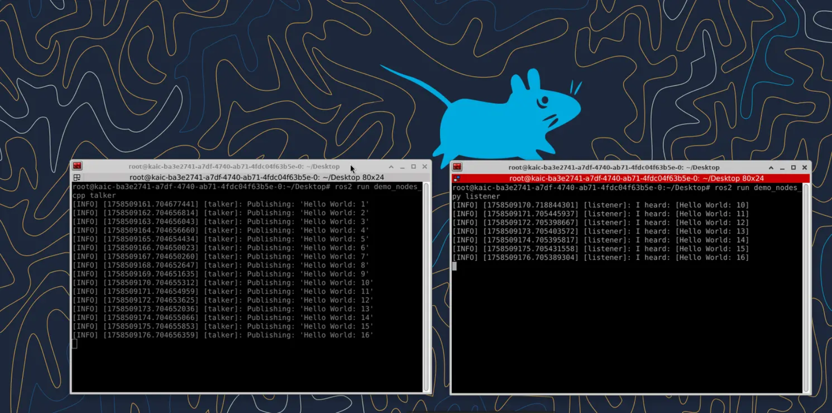 3.Gazebo镜像内置ros2 jazzy,可以尝试以下示例检测ros是否正常。