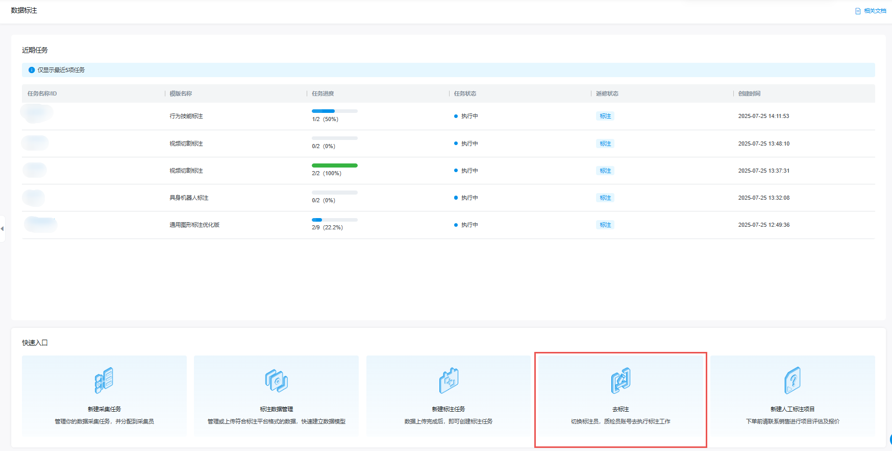 此步骤是核心工作流,子账号拥有相关功能权限,涉及数据准备与任务分配,用于上传需要标注的数据集、配置标注任务并分配人员。
