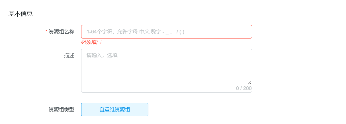 资源组 | 默认会自动带出 |