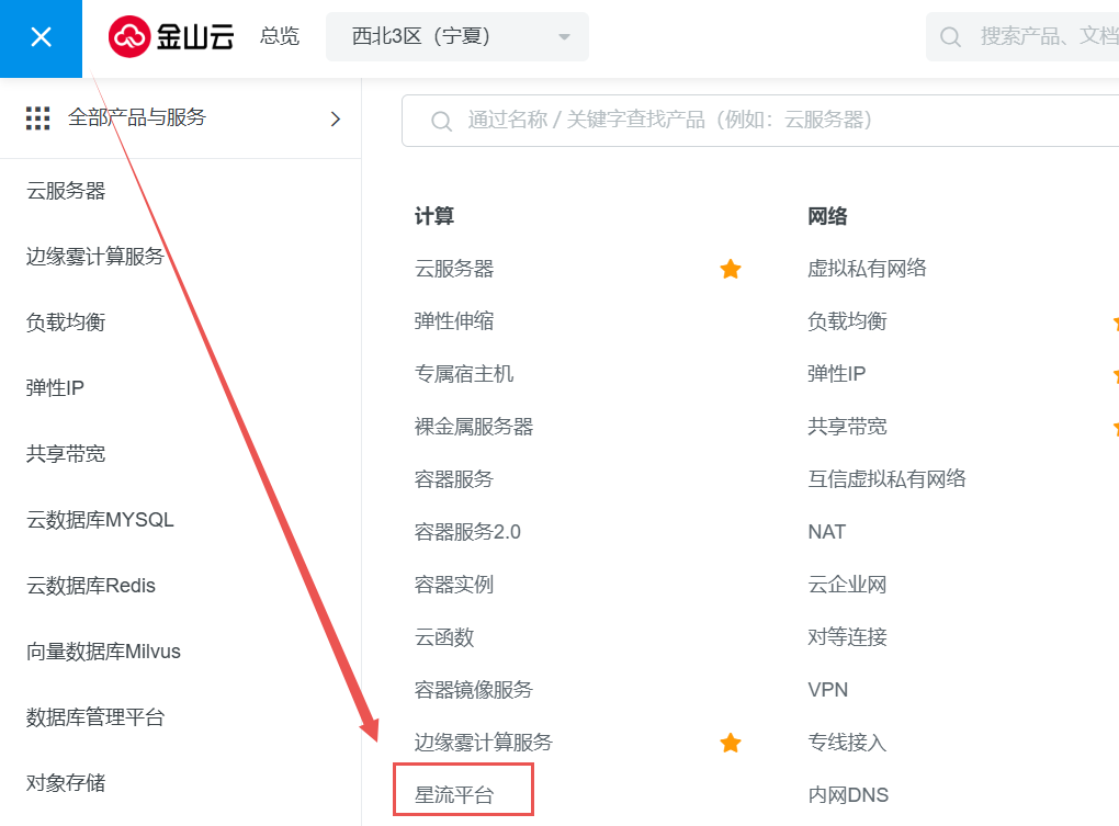 1.登录金山云控制台,选择星流平台