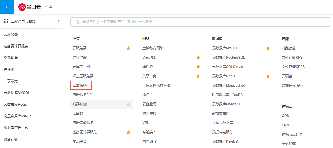 1.登录金山云控制台,选择容器服务