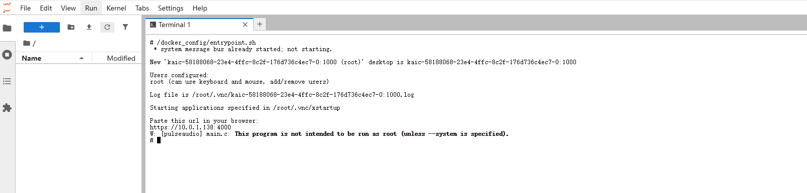 2.进入终端内执行/docker_config/entrypoint.sh启动kamsvnc远程桌面服务(以Jupyter为例)