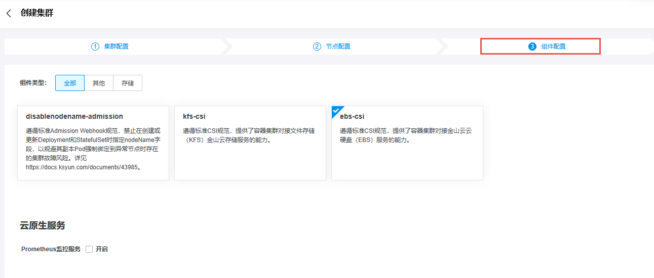 创建容器集群-组件配置