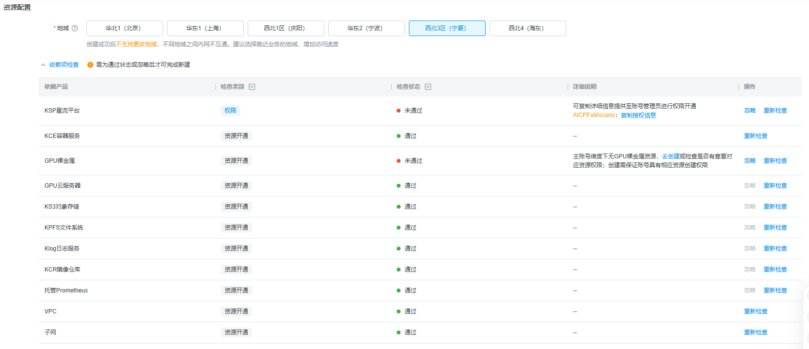 数据中心 | 选择区域,默认和前面创建集群时选择的一样 |