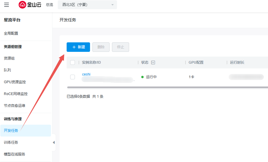 在星流平台左侧导航栏中,选择训练与推理,点击开发任务