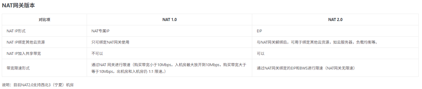 NAT 2.0功能更加灵活,详情请见https://docs.ksyun.com/documents/42997?type=3