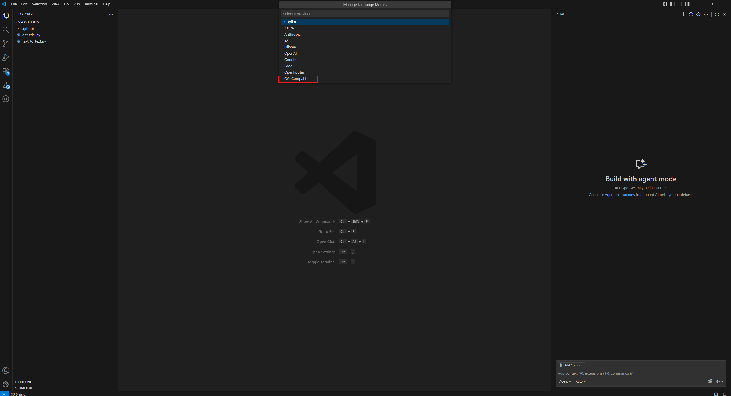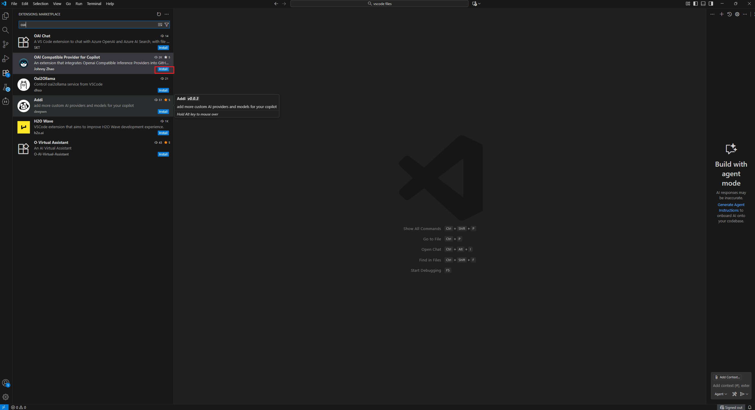 在VSCode中进入扩展商店并搜索OAI Compatible,并安装OAI Compatible Provider for Copilot
