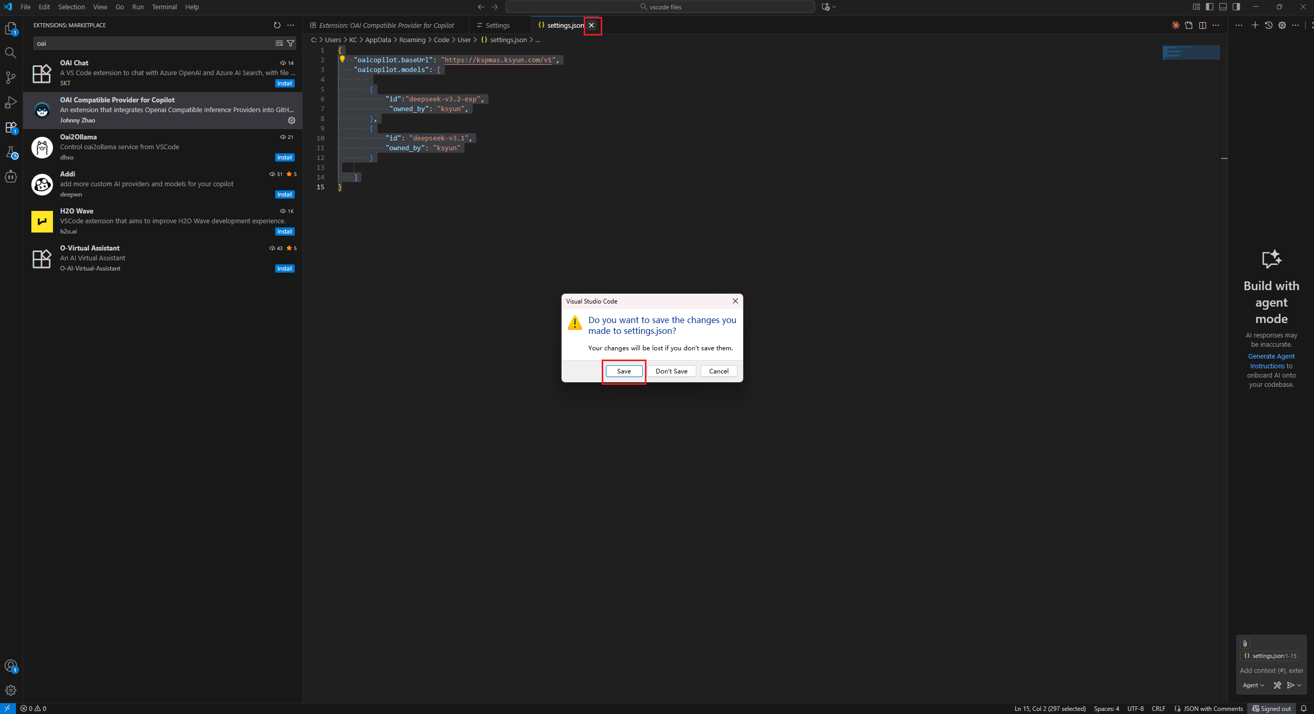 "oaicopilot.baseUrl": "https://kspmas.ksyun.com/v1",