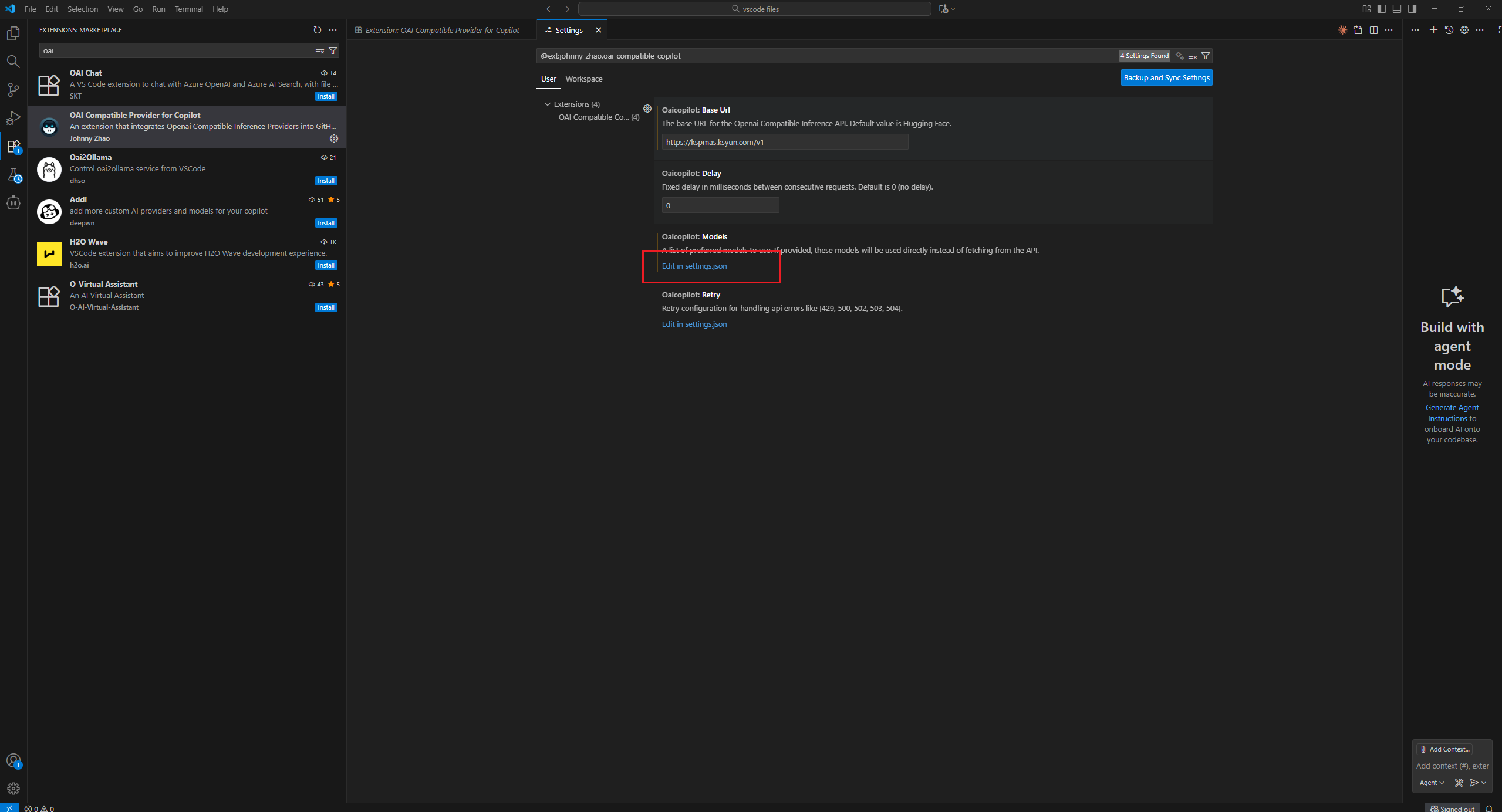 本文主要介绍如何在 VSCode 中安装和配置 OAI Compatible 扩展以使用金山云星流平台模型 API 服务。