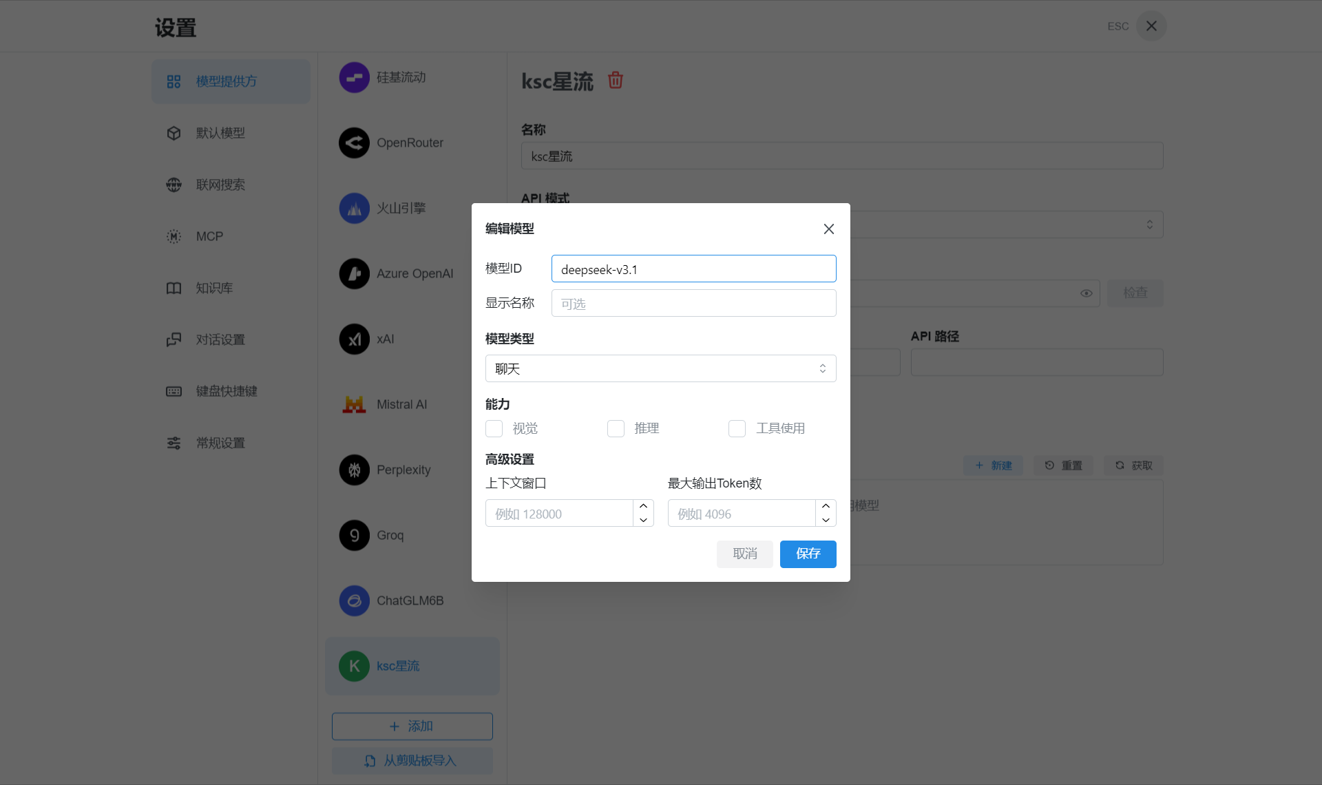 高级设置 | 否 | 可选项,按模型实际提供能力配置防止输出过长 |