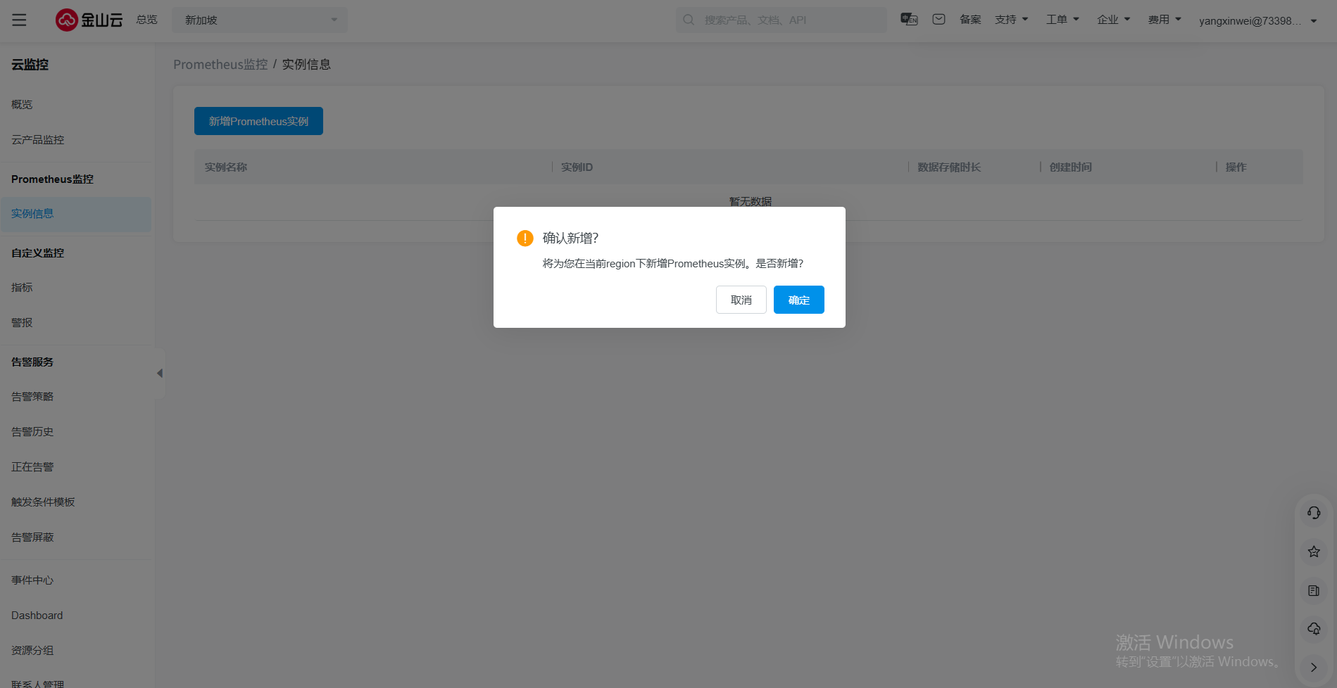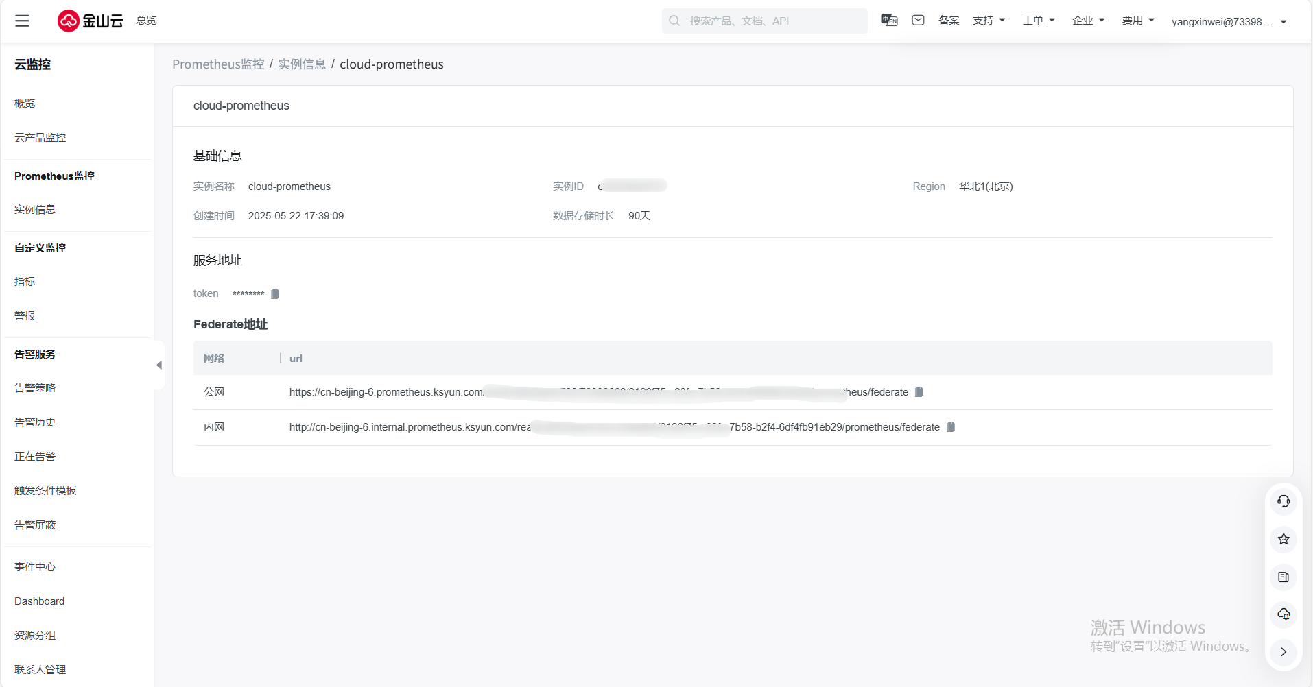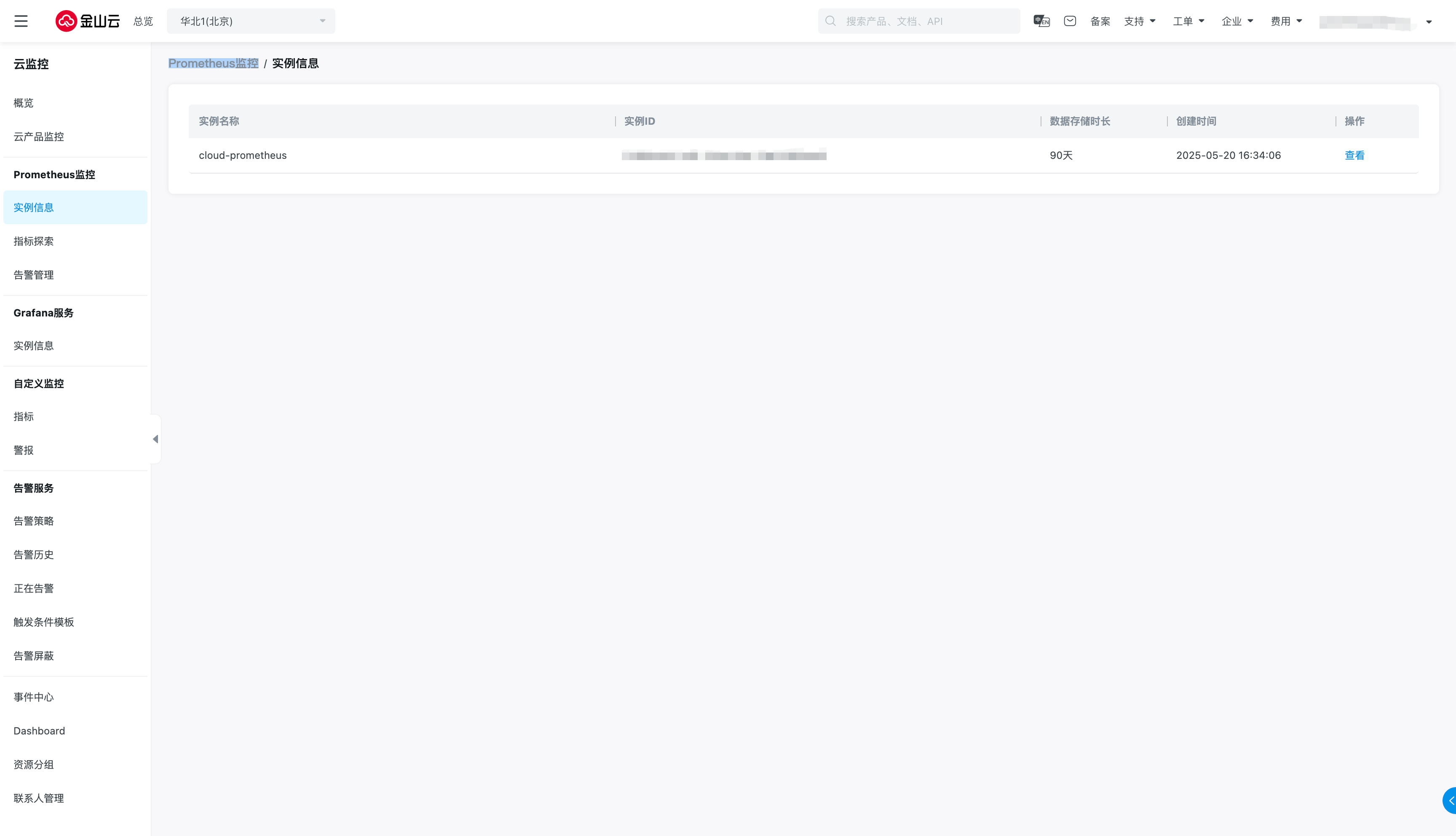 创建实例后,您将能够查看到新创建的Prometheus实例的详细信息。通过这些信息,您可以对实例的详情有一个全面的了解,并据此进行必要的调整和优化。