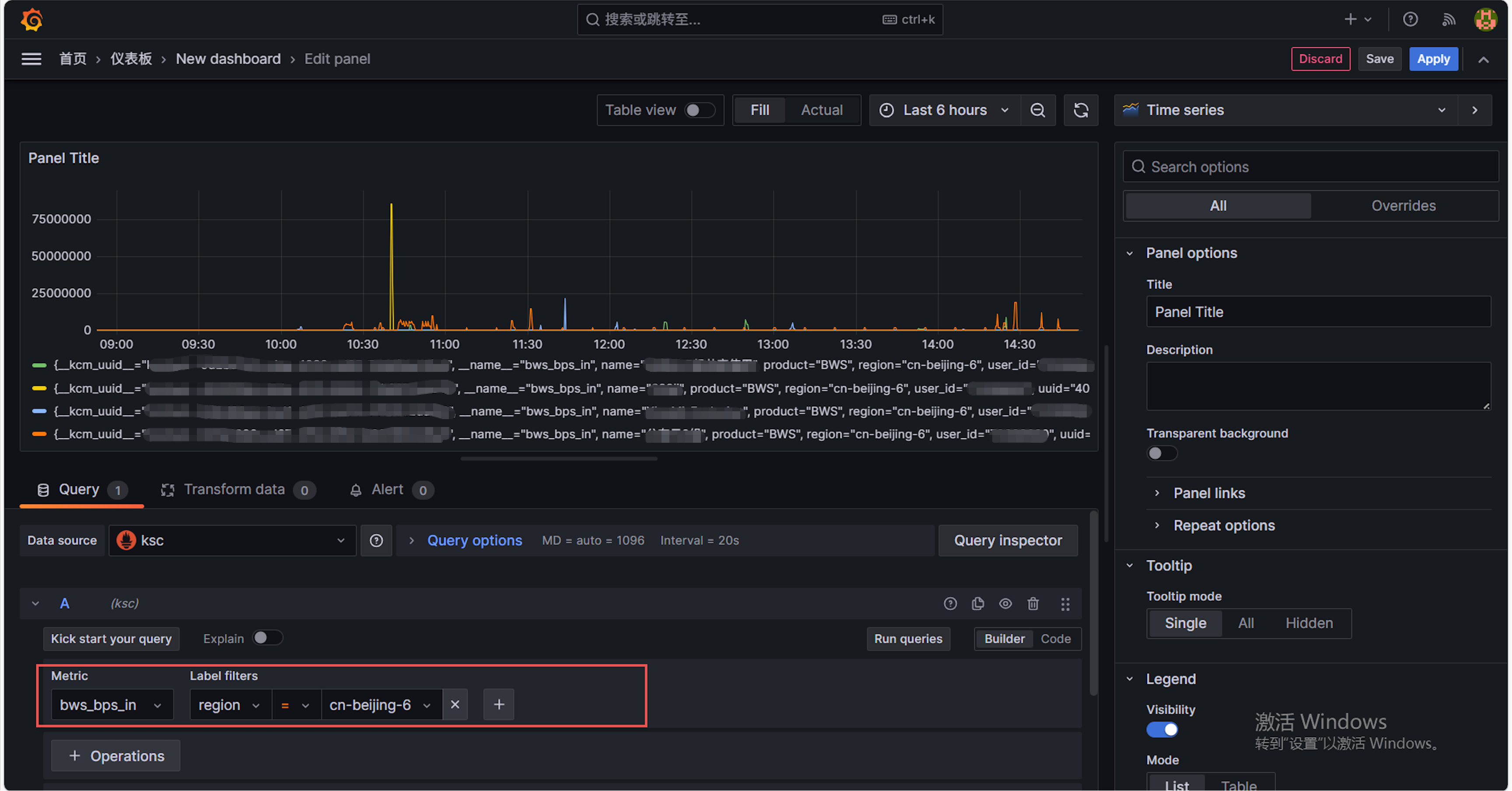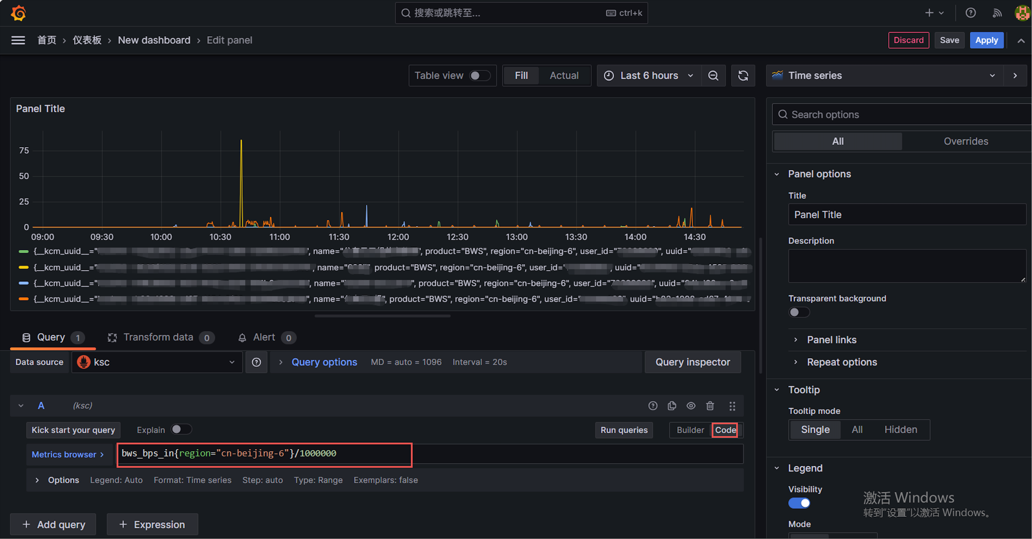 以 BWS 为例采集数据为bps,如需要为 Mbps 则需进行换算