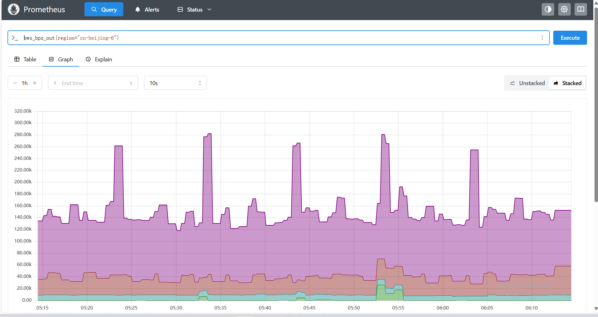 - bws_bps_out{region="cn-beijing-6"}//示例BWS北京Region全部实例出网带宽