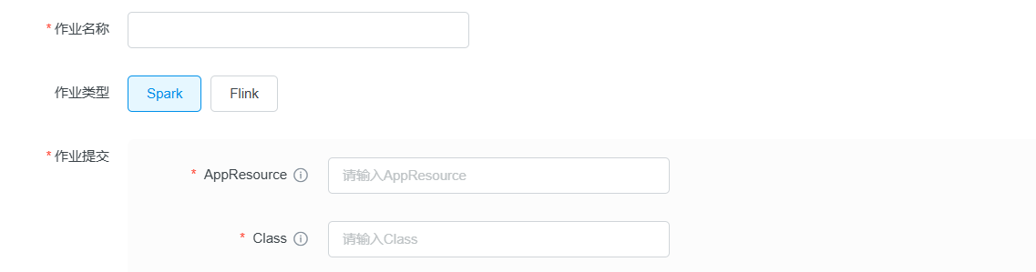 本文档介绍如何使用作业提交界面创建和提交 Spark 任务。该界面提供了完整的配置选项,包括基础作业信息和高级资源配置。