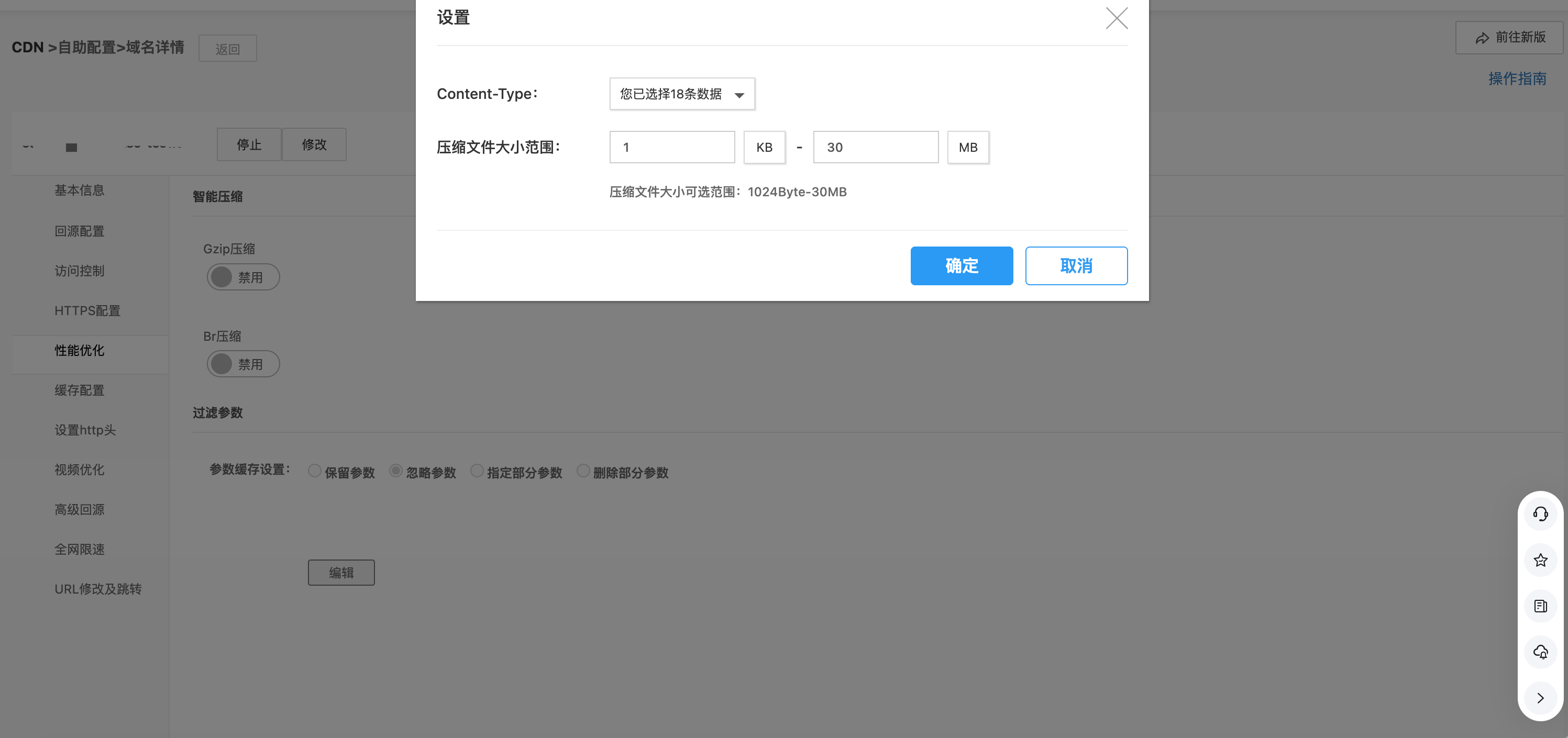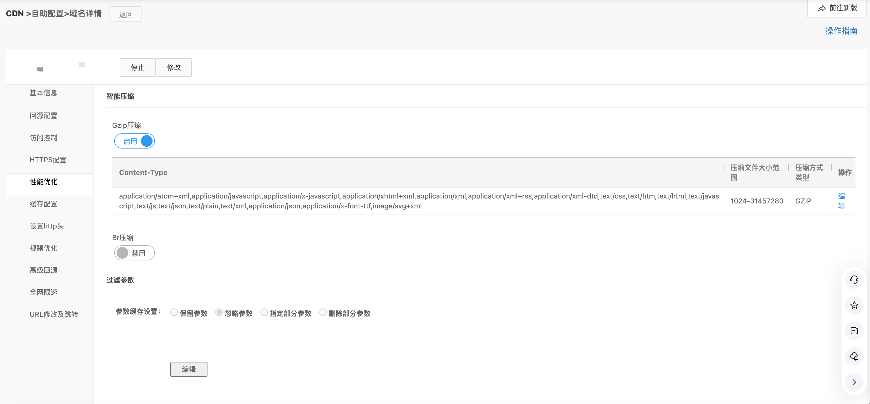 您可以在【性能优化】页面开启 Gzip压缩或 Br压缩,配置如下