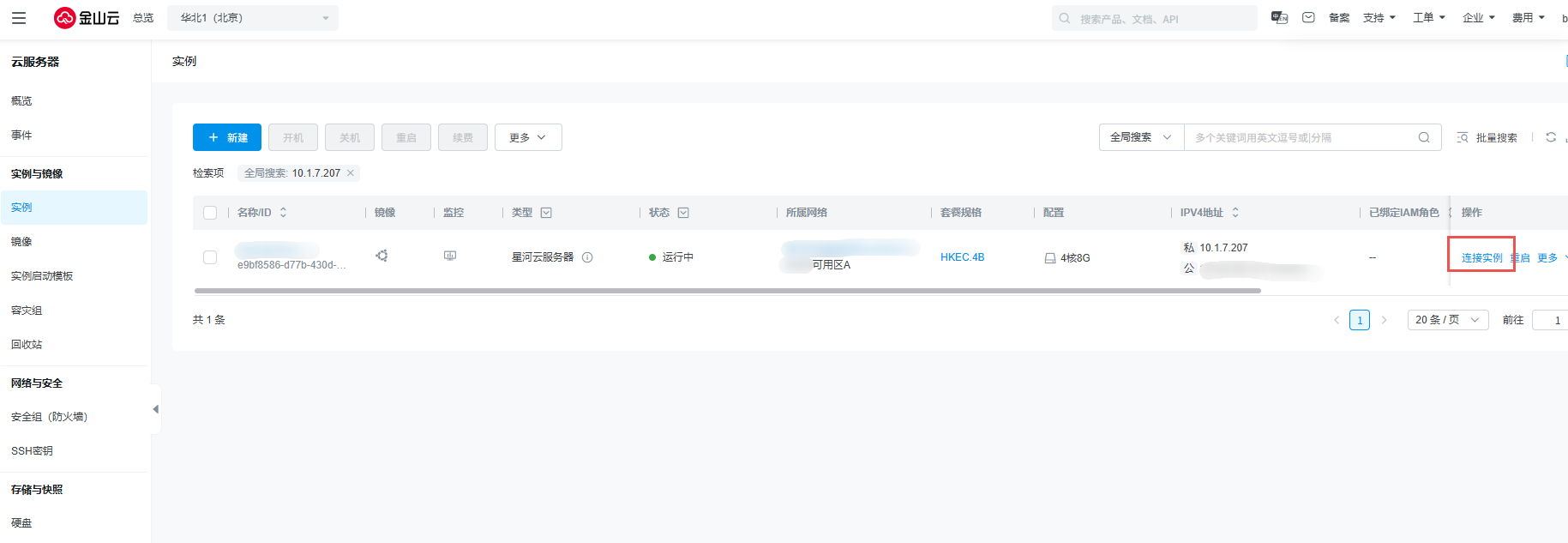 选择需要挂载文件系统的云服务器,单击连接实例,输入用户名和密码登录即可。
