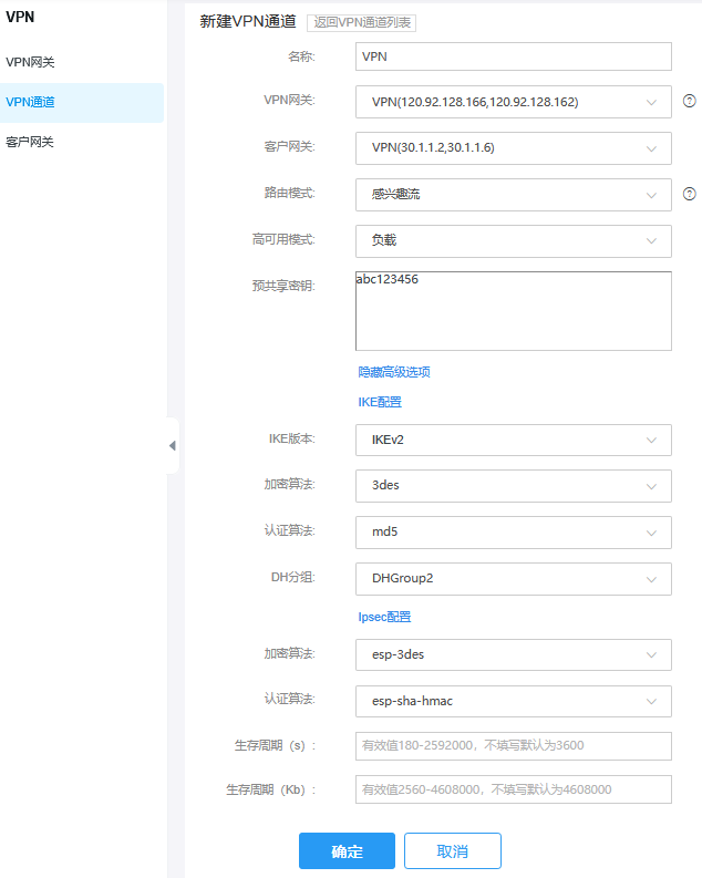 用户侧VPN通道配置: