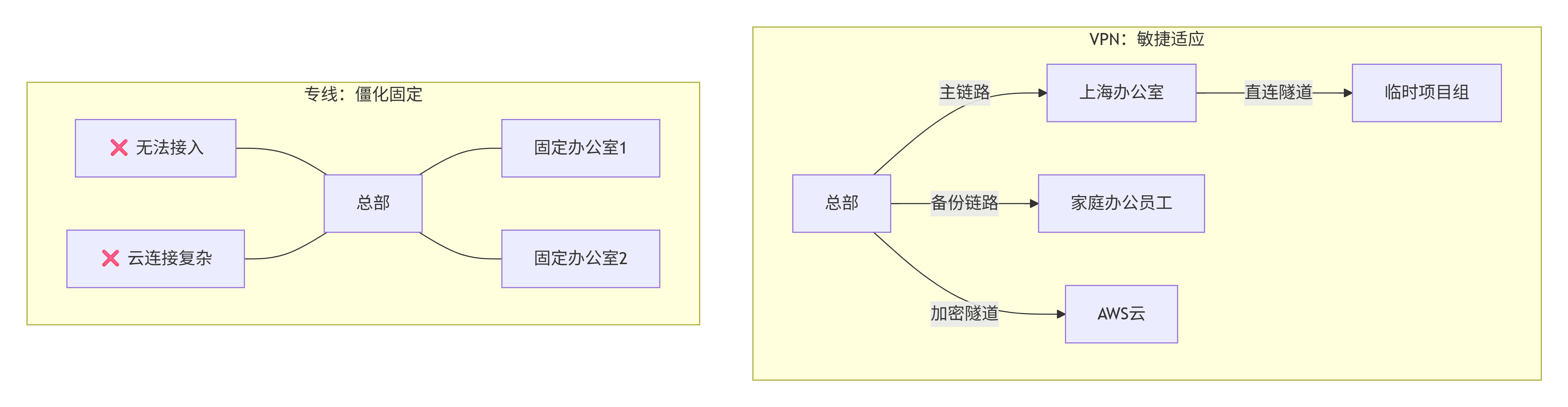部署成本 | 只需公网IP和设备支持VPN即可,部署速度快 | 通过专用的物理专线接入金山云网络,成本较高部署周期长 |