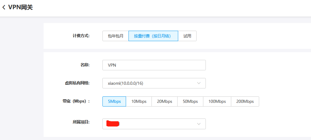 云上VPN网关创建: