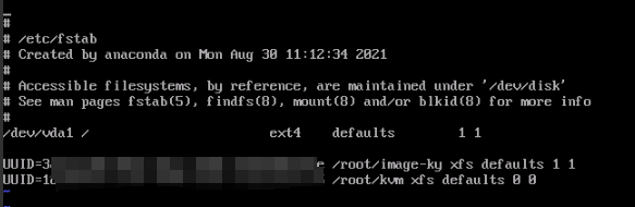 vi /etc/fstab返回信息如下图所示