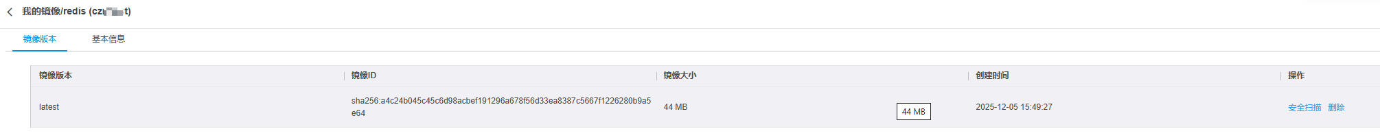 在KCR个人版实例>我的镜像,进入目标仓库,可看到redis镜像成功由Harbor仓库同步至KCR仓库,同步任务成功。