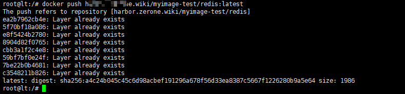 在本地服务器执行镜像推送至Harbor仓库命令,以 Redis 镜像为例: