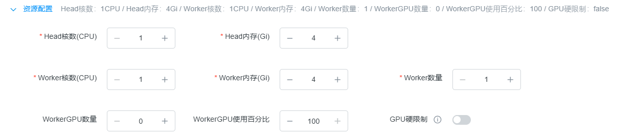 资源配置决定了Ray集群的计算能力。界面顶部会显示当前配置的概览。