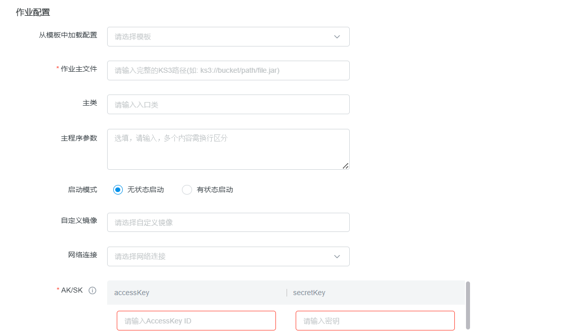 *作业主文件 | 应用程序主文件路径 | 必填 | 输入完整的对象存储(KS3)路径,如: |