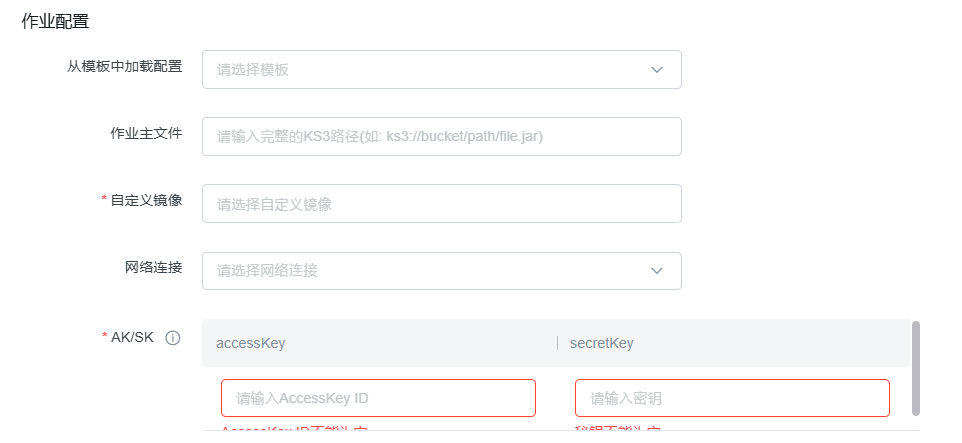 从模板中加载配置 | 使用保存的配置模板快速填充 | 可选 | 从下拉菜单中选择已创建的Flink作业模板 |