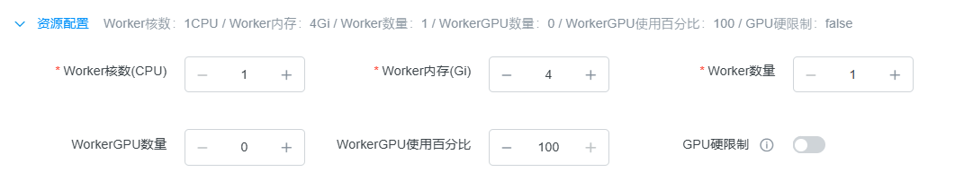 WorkerGPU数量 | 每个Worker节点的GPU卡数 | 0 | 点击"+"增加,点击"-"减少 |
