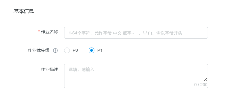 作业描述 | (可选)对作业的补充说明。 | 文本描述,最多支持200个字符。 |