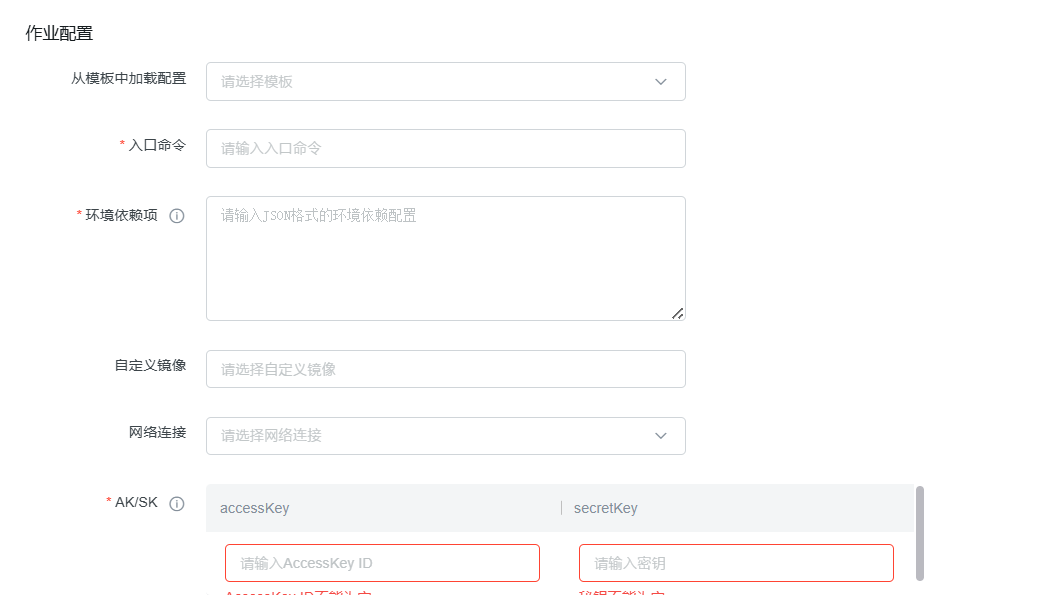 网络连接 | 作业运行的网络环境 | 可选 | 从下拉列表中选择已有的VPC网络配置 |