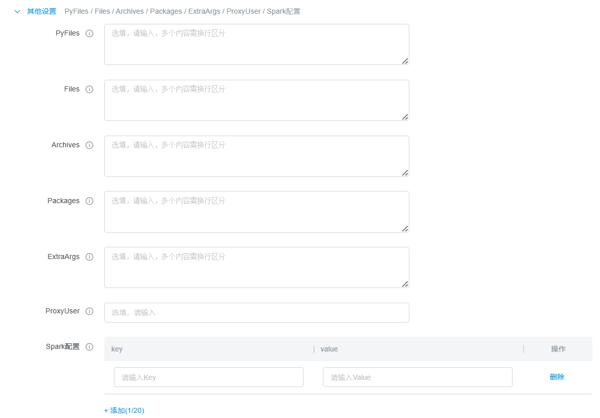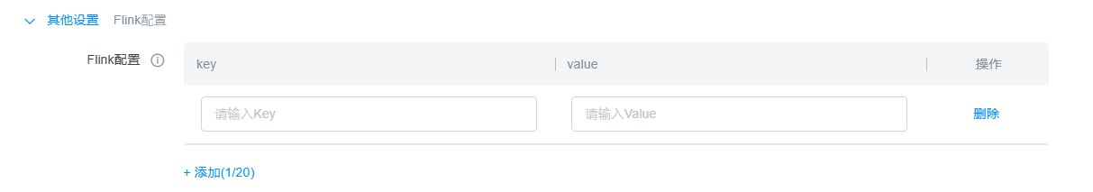 +添加(1/20) | 添加新的配置项 | 最多可添加20个Flink配置 |