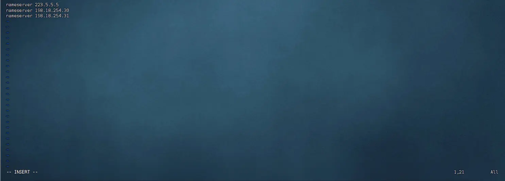 vi /etc/resolv.conf按i进入编辑模式