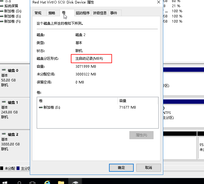 右键单击磁盘,在弹出菜单中选择属性>卷,若磁盘分区格式为gpt表示分区转换成功。