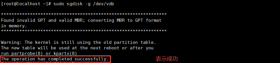 2 type sgdisk || sudo apt-get install -y gdisk<待转换设备名称>可通过sudo fdisk -lu的disk字段获取,sgdisk只能对待转换设备(例如/dev/vdb)进行操作,不能对分区(如/dev/vdb1)进行操作,否则可能会损坏文件系统。