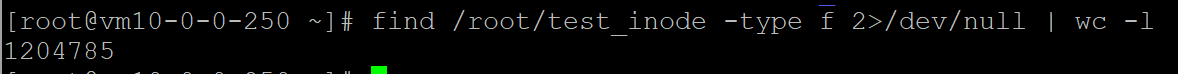 文件数量统计显示 /root 下有 120 多万个文件,这意味着这些文件几乎都在 test_inode 目录中。