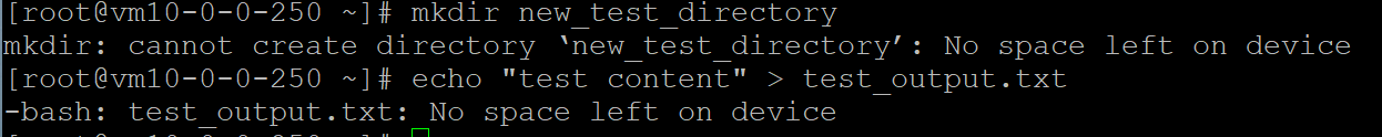 在日常运维中,当尝试创建文件或目录时,系统提示 "No space left on device"。